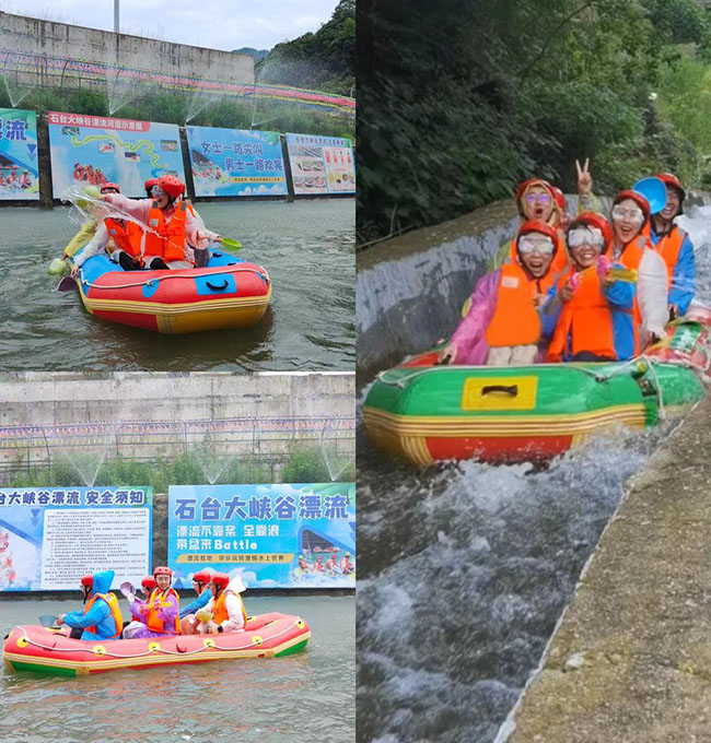 下午,會(huì)員們轉(zhuǎn)戰(zhàn)石臺(tái)大峽谷,以漂流的方式鍛煉意志。大峽谷全長(zhǎng)8.6公里,走勢(shì)蜿蜒,水流湍急。會(huì)員們分乘8艘皮劃艇沿急流而下,2個(gè)小時(shí)的漂流,既有驚心動(dòng)魄的刺激,又有清涼無(wú)極的快樂(lè)!