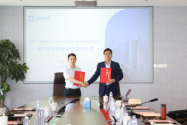 2025年4月17日,安徽天禾律師事務所(以下簡稱“天禾所”)與安徽中瑞華稅務師事務所集團有限公司(以下簡稱“中瑞華集團”)在天禾所成功簽署破產(chǎn)稅務戰(zhàn)略合作協(xié)議。天禾所權益合伙人、財稅團隊負責人張秀友,兼職律師吳曉紅,錦天城合肥律師事務所高級合伙人、聯(lián)合破產(chǎn)事業(yè)部董事徐偉學,高級合伙人、聯(lián)合破產(chǎn)事業(yè)部總經(jīng)理許華滿,中瑞華集團總經(jīng)理陳華、高級顧問程華好、高級合伙人耿朋程、高級項目經(jīng)理顧偉玲、綜合部主任黃慧郡,立信中聯(lián)會計師事務所安徽分所負責人陳水兵以及其他業(yè)務骨干出席本次簽約儀式。