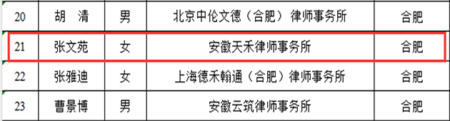 近日,安徽省律師協(xié)會正式公示《安徽省律師協(xié)會青年律師人才庫擬入庫人員名單》。天禾所合伙人張文苑律師憑借其卓越的專業(yè)能力和行業(yè)貢獻(xiàn),成功入選該省級人才庫。