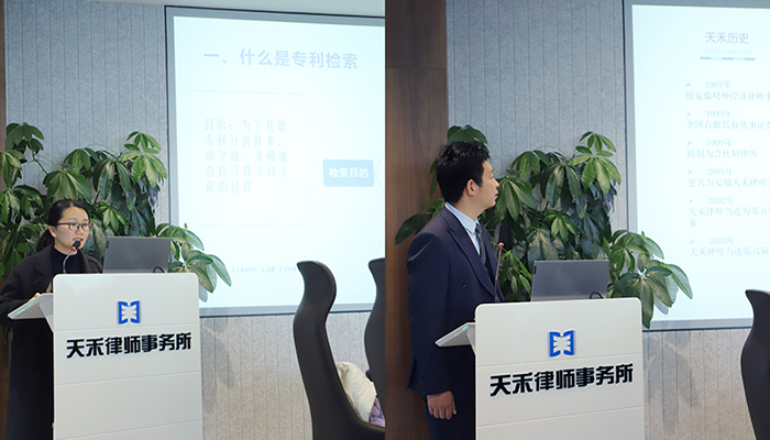 會上,天禾所合伙人張叢俊律師通過專題展示,系統(tǒng)介紹了律所的發(fā)展歷程、業(yè)務架構、社會責任與文化理念等,幫助學生構建對律所運營與律師職業(yè)的全面認知。張凱律師以“專利檢索實務”為主題,從檢索動因、時間界定、路徑方法等維度展開講解,結合案例演示,增強學生對知識產權實務操作的理解。