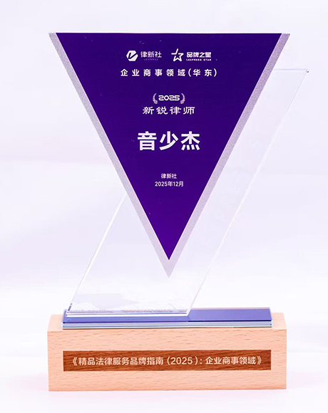 2025年12月28日,由律新社主辦的“法商聚力·馭勢致遠(yuǎn)——2025企業(yè)商事法律服務(wù)發(fā)展論壇”在上海國家會(huì)展中心洲際酒店成功舉辦。論壇現(xiàn)場發(fā)布了《精品法律服務(wù)品牌指南(2025):企業(yè)商事領(lǐng)域》,并揭曉年度企業(yè)商事與法務(wù)系列精品榜單。安徽天禾律師事務(wù)所權(quán)益合伙人音少杰律師憑借卓越的專業(yè)實(shí)力與行業(yè)口碑,榮獲“2025年度企業(yè)商事領(lǐng)域品牌之星:新銳律師(華東)”稱號(hào)。
