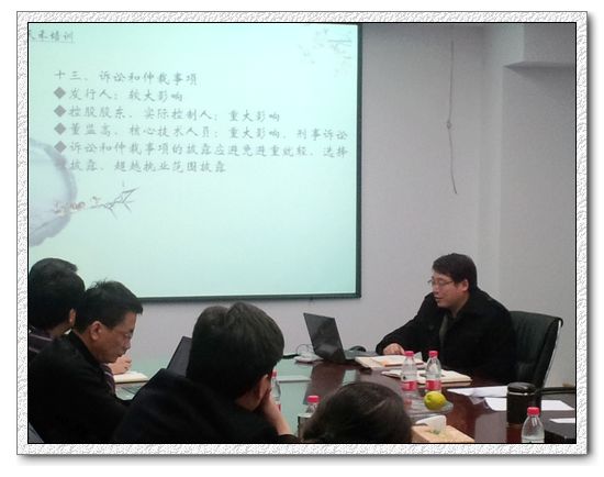 本次學習交流會主要學習了全國律協(xié)、中國證監(jiān)會于2012年12月21日—22日聯(lián)合舉辦的證券法律業(yè)務培訓班培訓內(nèi)容,并進行證券法律業(yè)務討論交流。