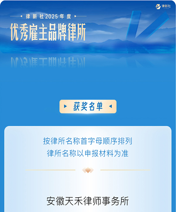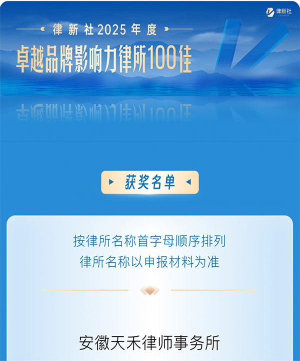 2026年3月14日,第四屆法律服務(wù)業(yè)品牌發(fā)展論壇暨律新社2026品牌盛典在上海舉辦。論壇期間,《律所卓越品牌影響力指南(2025)》正式發(fā)布,安徽天禾律師事務(wù)所再度榮登榜單,連續(xù)三年同時(shí)獲評(píng)“2025年度卓越品牌影響力律所100佳”與“2025年度優(yōu)秀雇主品牌律所”。