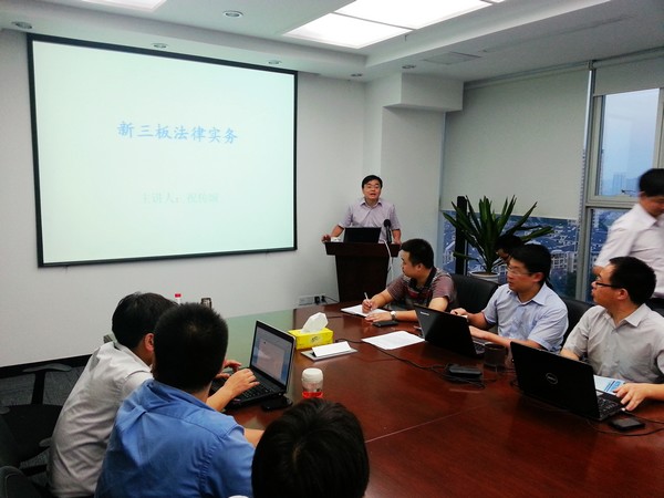 2013年8月5日晚,在本所15樓大會議室,本所合伙人、全國律協(xié)公司法專業(yè)委員會委員、安徽省律協(xié)公司法專業(yè)委員會副主任委員祝傳頌律師主講《新三板法律事務》課程。祝傳頌律師緊跟資本市場最新時態(tài),以本所服務并掛牌成功的安徽首家“新三板”公司為案例,講述了“新三板”即全國中小企業(yè)股份轉讓系統(tǒng)的最新信息動態(tài)、相關法律制度及應用理解、安徽場外股權交易的區(qū)域市場(四板市場)等內容。祝律師的講課激情四溢,深入淺出,培訓現(xiàn)場氣氛活躍。