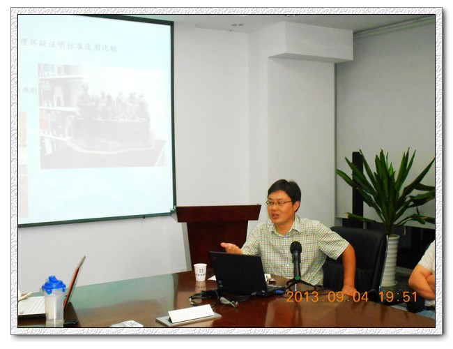 2013年9月4日晚7時(shí),本所2013年第八期業(yè)務(wù)交流學(xué)習(xí)會(huì)在十五樓會(huì)議室召開。安徽大學(xué)法學(xué)院教授、博士生導(dǎo)師郭志遠(yuǎn)應(yīng)邀來所講授“證據(jù)運(yùn)用律師實(shí)務(wù)”。郭教授參照自己國外學(xué)習(xí)實(shí)踐經(jīng)驗(yàn),結(jié)合自己的研究成果,講授了一些法學(xué)理論前沿知識。本次學(xué)習(xí)交流會(huì)標(biāo)志著本所的學(xué)習(xí)培訓(xùn)活動(dòng)進(jìn)入一個(gè)新的階段——聘請外部“頭腦”為本所律師培訓(xùn),拓寬了學(xué)習(xí)交通的廣度與深度。