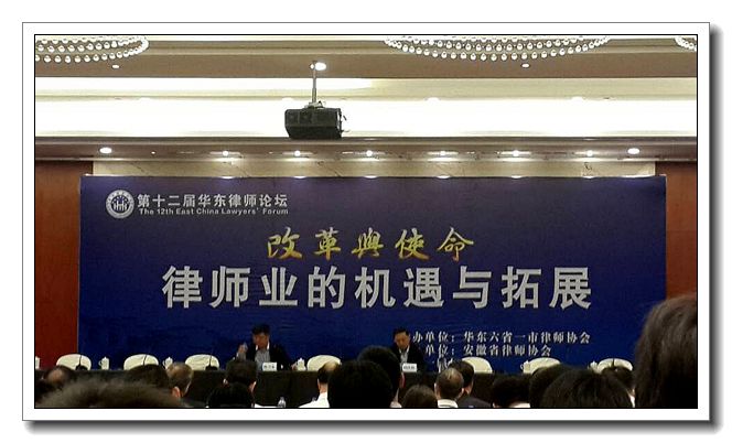 “第十二屆華東律師論壇”由華東六省一市律師協(xié)會聯(lián)合主辦、安徽省律師協(xié)會承辦。來自華東六省一市的百余名律師精英齊聚合肥,共話律師業(yè)發(fā)展。本屆論壇的主題為“改革與使命:律師業(yè)的機遇與拓展”,探討在新形勢下律師行業(yè)如何改善執(zhí)業(yè)環(huán)境、加強行業(yè)建設(shè)、拓展新興業(yè)務(wù)等話題。安徽省司法廳廳長洪禹候、安徽省司法廳副廳長沙奇志、中華全國律師協(xié)會副會長盛雷鳴、中國律師網(wǎng)執(zhí)行主編劉耀堂等出席了論壇開幕式。