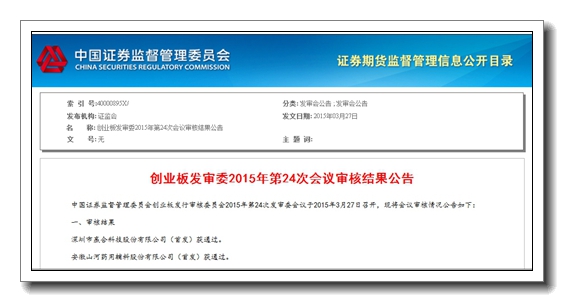 2015年3月27,經(jīng)證監(jiān)會(huì)創(chuàng)業(yè)板發(fā)審委2015年第24次會(huì)議審核,由本所擔(dān)任發(fā)行人律師的安徽山河藥用輔料股份有限公司首發(fā)獲通過(guò)。該公司也是今年目前本所擔(dān)任發(fā)行人律師的第三家獲得審核通過(guò)IPO企業(yè)。本所合伙人張大林、王小東律師為山河藥輔IPO提供了專項(xiàng)法律服務(wù)。