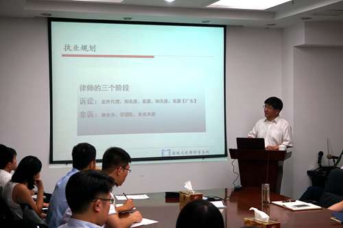 “人才培養(yǎng)對于律所來說至關(guān)重要,作為青年律師,更應(yīng)當(dāng)對自己有詳細(xì)的職業(yè)規(guī)劃并遵守職業(yè)操守,”蔣敏律師分別從職業(yè)規(guī)劃和職業(yè)操守兩個方面,詳細(xì)地為青年律師們開堂授課。蔣敏律師指出,每位律師都將經(jīng)歷職業(yè)的多個發(fā)展階段,因此作為律師首先應(yīng)當(dāng)清晰地認(rèn)識到自身發(fā)展特色,選擇與自己相符合的職業(yè)軌跡。此外,律師還必須具備高度的專業(yè)素養(yǎng),“律師是一個時間成本相對較高的行業(yè),這就要求我們必須更加專注、專業(yè),認(rèn)真對待每一份委托事項,始終保持冷靜、自信、謙和態(tài)度,做一個受人尊敬的律師”。