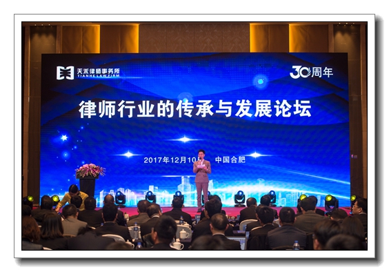 時俠聯(lián)廳長代表司法廳對本次論壇的召開以及天禾所成立30周年表示了祝賀。時廳長表示,近年來安徽律師事業(yè)取得了長足的進步,各方面工作穩(wěn)步推進,為全省經(jīng)濟社會發(fā)展作出了重要的貢獻。天禾律師事務(wù)所就是安徽律師行業(yè)涌現(xiàn)出的杰出代表。時廳長表示,傳承與發(fā)展是個恒舊也恒新的問題,希望通過本次論壇的召開,可以總結(jié)律師行業(yè)的發(fā)展經(jīng)驗,并為今后的發(fā)展形成共識統(tǒng)一思路,促進安徽律師事業(yè)再上新臺階。