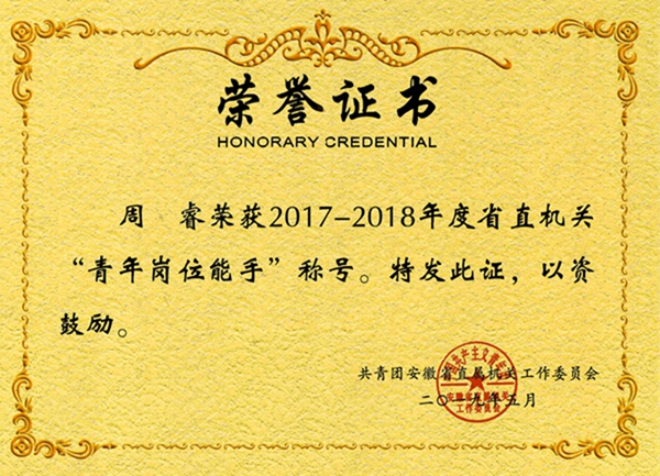 本所青年律師周睿獲省直機關(guān)2017-2018年度“青年崗位能手”榮譽稱號