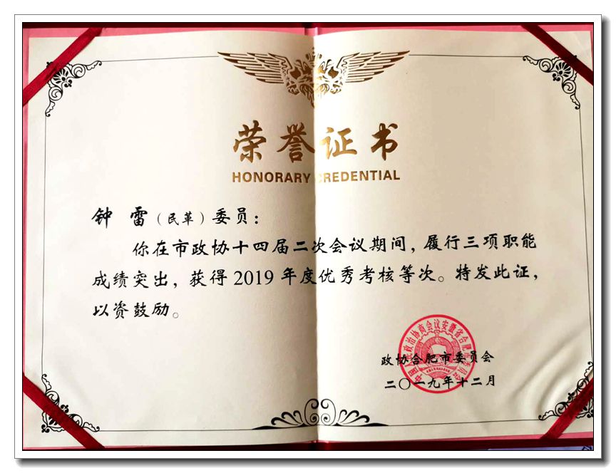 鐘雷律師作為市政協(xié)委員積極參政議政,榮獲2019年優(yōu)秀政協(xié)委員。