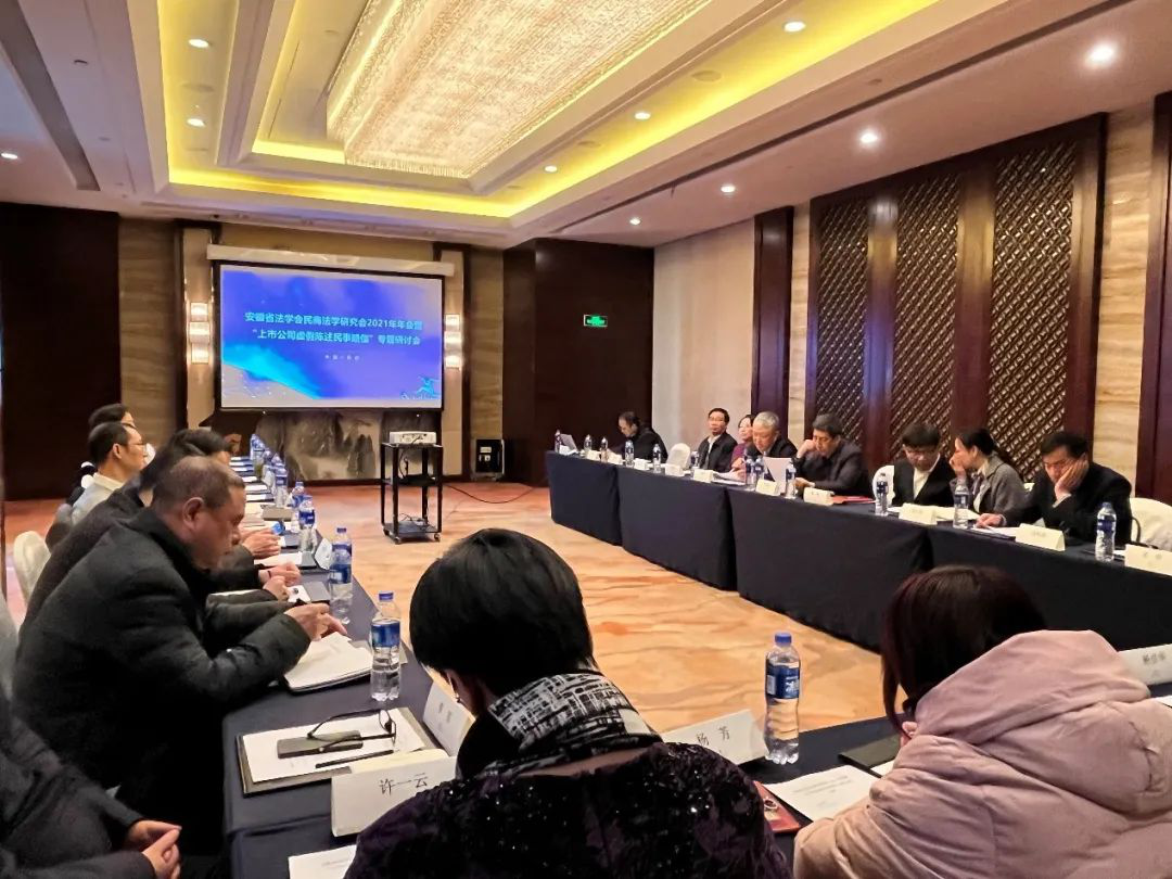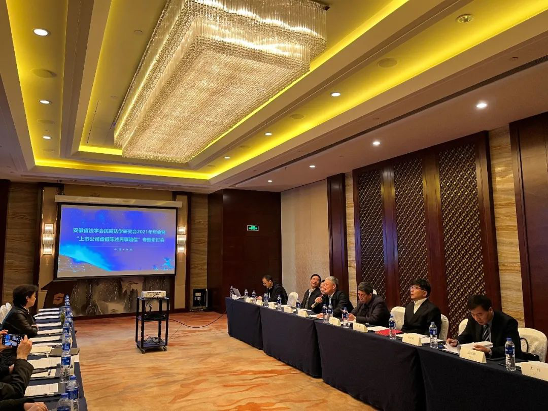 2021 年 12 月 19 日,安徽省法學(xué)會民商法學(xué)研究會2021年年會暨“上市公司虛假陳述民事賠償”專題研討會在安徽省合肥市召開。本次研討會由安徽天禾律師事務(wù)所承辦,安徽省法學(xué)會副會長、民商法學(xué)研究會會長汪利民出席并致辭,研究會部分理事參會。