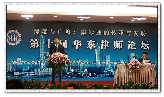 “第十屆華東律師論壇”由華東六省一市律師協(xié)會聯(lián)合主辦、上海市律師協(xié)會承辦。來自華東六省一市的百余名律師精英齊聚申城,共話律師業(yè)發(fā)展。本屆論壇的主題為“深度與廣度:律師業(yè)的傳承與發(fā)展”。 上海市高級人民法院院長應(yīng)勇、上海市司法局局長吳軍營、全國律協(xié)會長王俊峰、中國法學(xué)會《民主與法制》總編輯劉桂明等出席了論壇開幕式。
