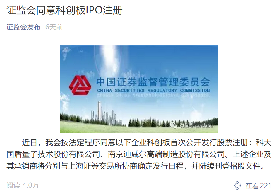 2020年6月2日,中國(guó)證監(jiān)會(huì)按法定程序同意科大國(guó)盾量子技術(shù)股份有限公司科創(chuàng)板首發(fā)上市注冊(cè),天禾律師事務(wù)所張大林律師、費(fèi)林森律師為其提供專項(xiàng)法律服務(wù)。