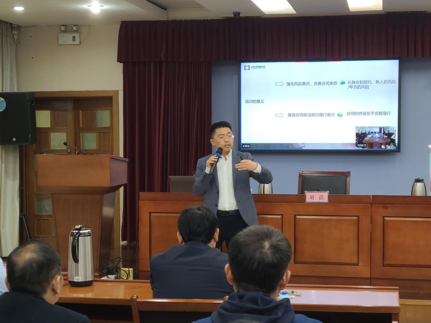 劉浩律師首先談到培訓(xùn)的意義主要為強化員工及公司風險意識,完善合同條款,以及提供合同依法依約履行意識;其次先后從買賣合同的構(gòu)成要素、買賣合同起草中的注意要素、買賣合同履行中的注意事項、招投標下買賣合同的特殊規(guī)則四個方面對該中心日常合同的起草及履行過程中須特別加以關(guān)注的問題進行了全面系統(tǒng)的講授;最后從三個視角出發(fā),對本次授課作了重要總結(jié),即其一起草審查合同時,應(yīng)站在未來如發(fā)生爭議,有無對應(yīng)的合同條款可明確適用的視角,其二合同履行過程中,應(yīng)站在每個履行節(jié)點或條件是否存在違約的問題視角,其三,發(fā)生爭議時,應(yīng)站在未來如發(fā)生訴訟,如何能夠贏得訴訟問題的視角。