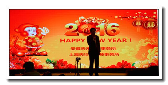 2015年12月31日晚,在祥源廣場徽宴樓,本所隆重舉辦一年一度的迎新晚會。事務(wù)所全體人員及家屬一百余人聚聚一堂,喜迎2016年的到來。青年律師及行政工作人員精心編排了一場主題為“陽光路上”的文藝演出。歌舞、小品、競猜游戲等精彩紛呈,充分展現(xiàn)了天禾人工作之余激情、陽光、幽默、睿智的一面。大家邊欣賞演出,邊互致問候,在祥和、團結(jié)、奮進、歡樂的氣氛中迎接新的一年的到來。(附:圖片)