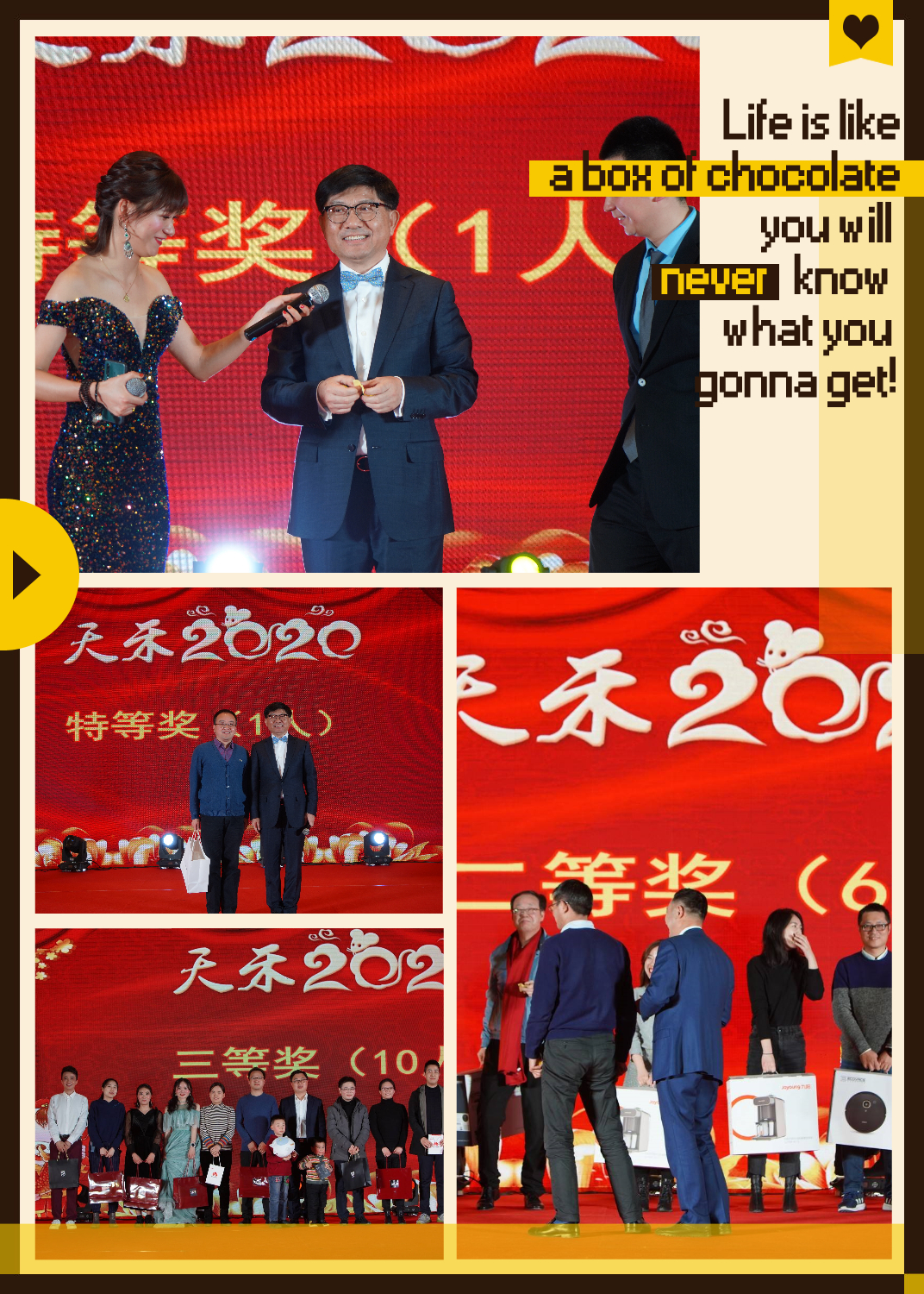 2020的元旦晚會以“同心同行,共創(chuàng)共贏”為主題,舉辦了一場精彩紛呈的元旦晚會。大家為了迎接新的一年的到來,全體成員攜同家人盛裝出席了這場晚宴,歡度元旦。