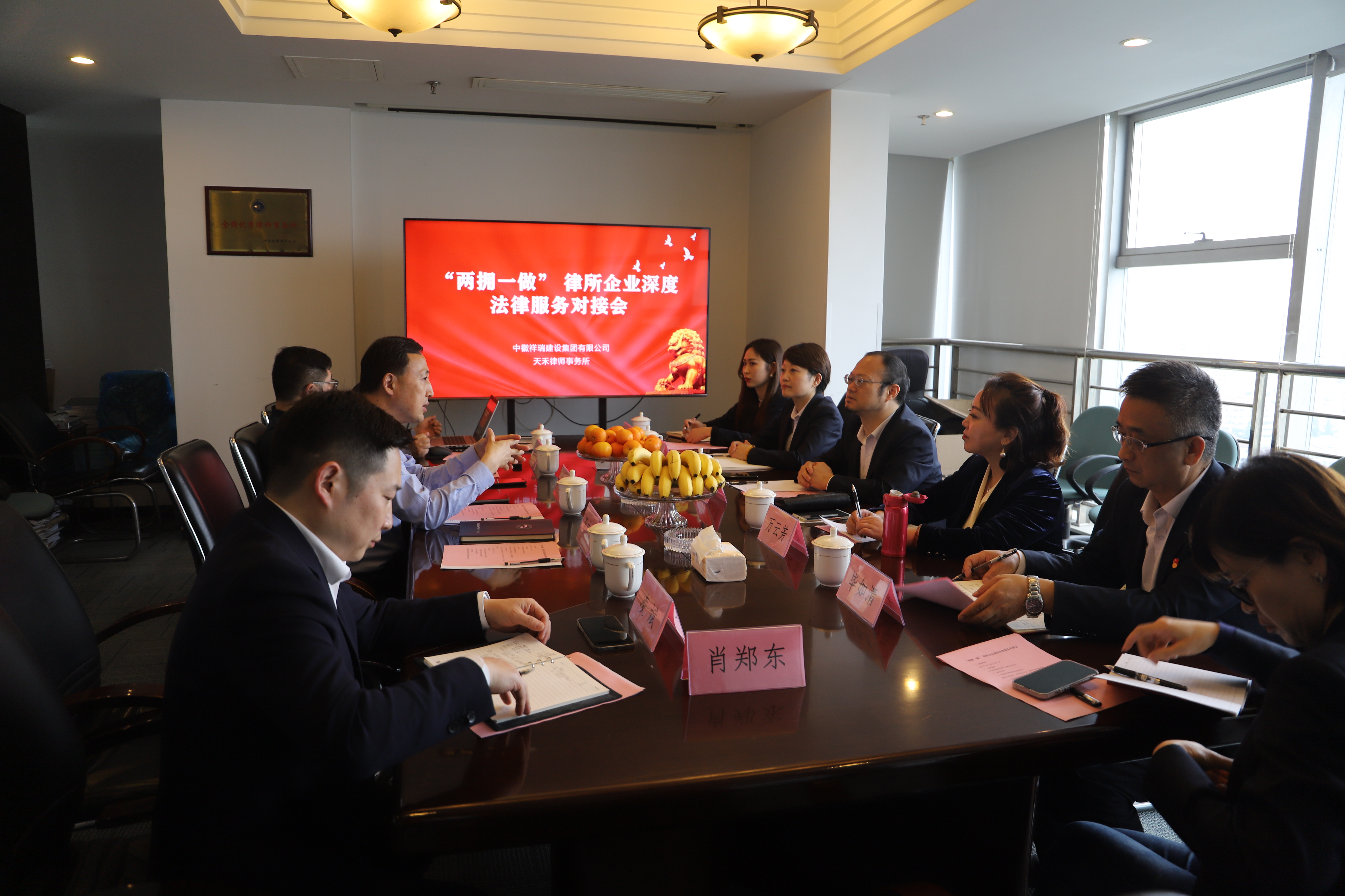 朱書記對郭總一行表示熱烈歡迎,介紹了本所開展“兩擁一做”情況,強調郭總一行來所交流是對企業(yè)深度法律服務體現(xiàn)。孫斌主持并介紹了本所的發(fā)展歷程與業(yè)務板塊。